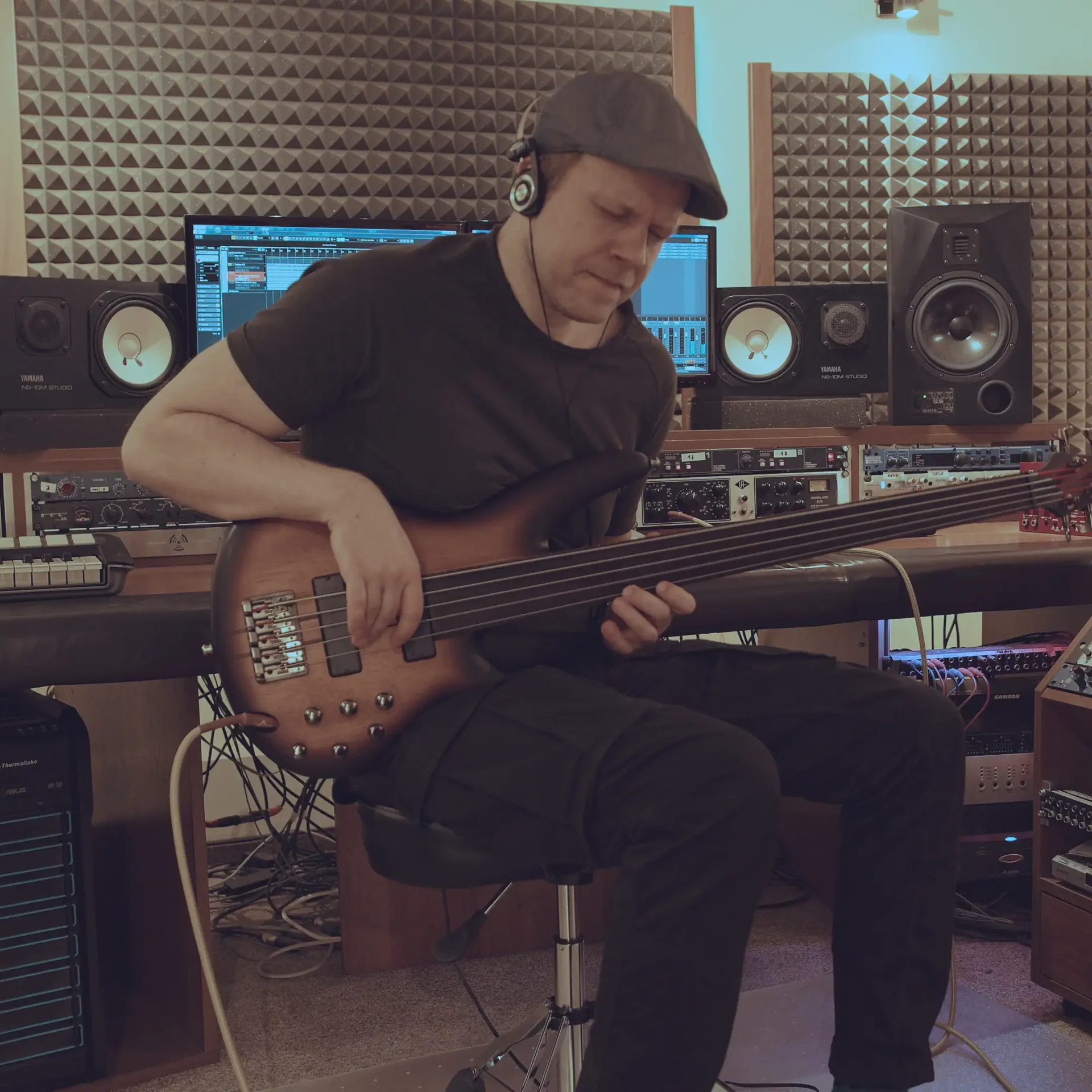 “Out of Fade” is a modern, multi-layered composition balancing between jazz, fusion, and electronics. A pulsating groove builds tension from the very first bars, while spacious keyboard textures gradually reveal new harmonic layers. The music unfolds organically — from atmospheric, almost cinematic passages to more intense and energetic climaxes.